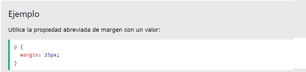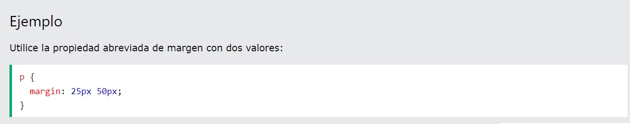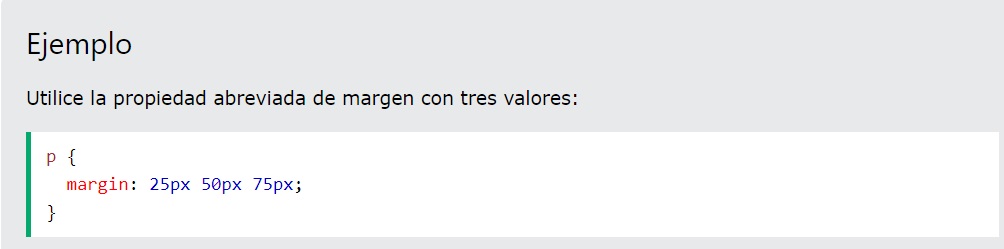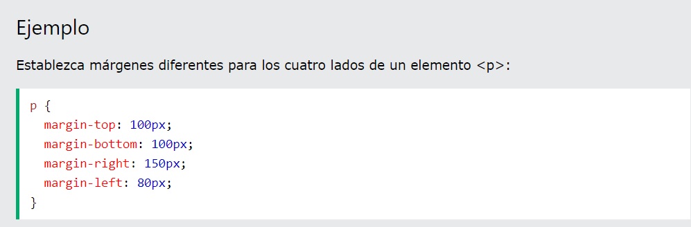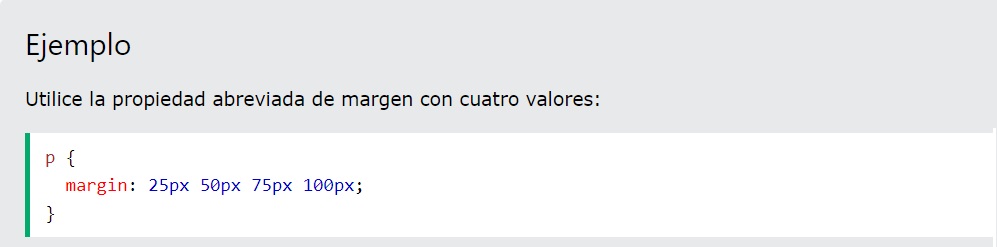 Para acortar el código, es posible especificar todas las propiedades de margen en una propiedad